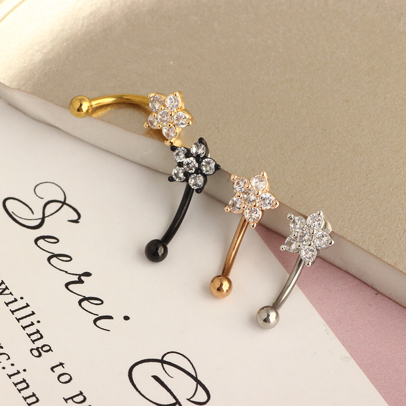 16G Stainless Steel Post With Micro-pave Zircon Small Plum Blossom Ear Bone Stud