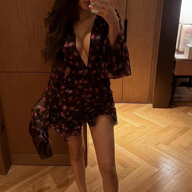 Floral-print Ruffled Long-sleeve Dress For Women