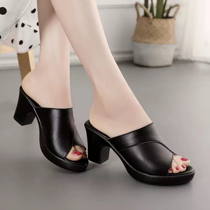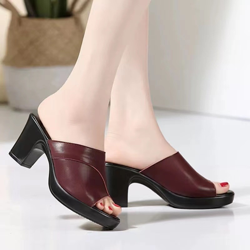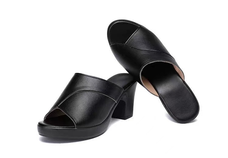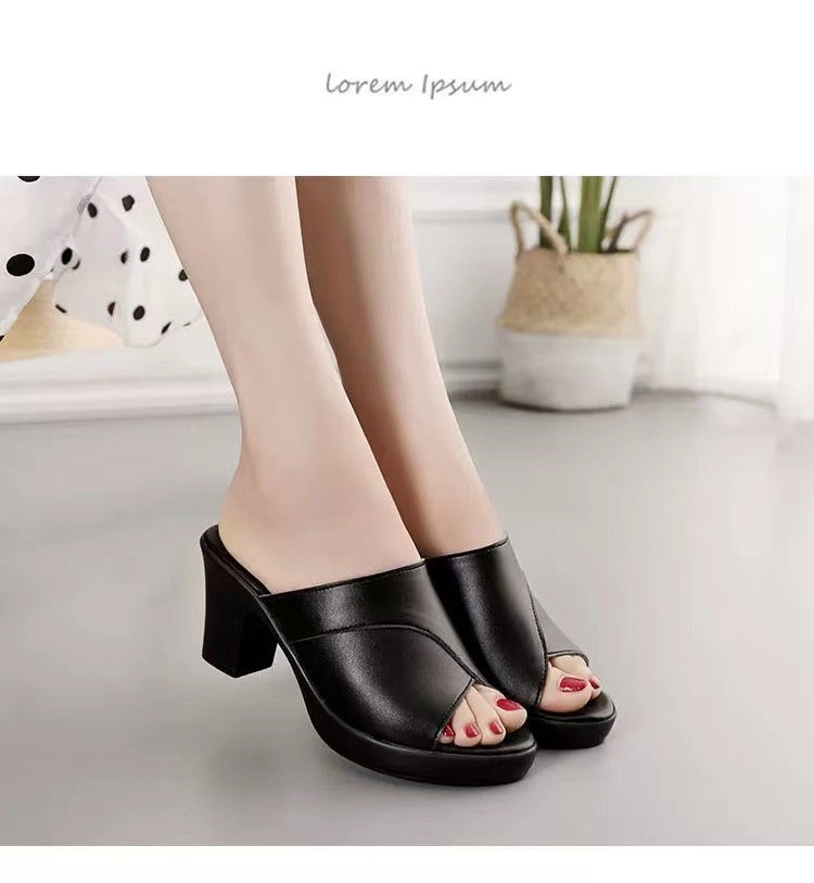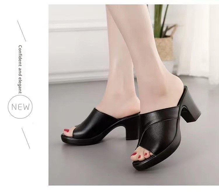 Heel Soft Leather Slip-resistant Thick Sole Peep-toe Sandals For Women